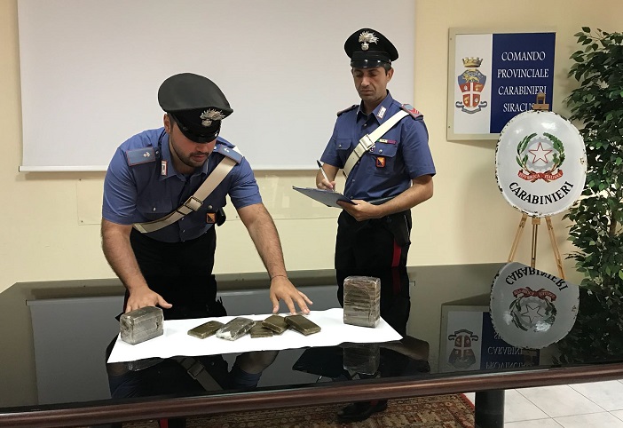 Due corrieri della droga sono stati arrestati in flagranza di reato dai Carabinieri, nel tratto autostradale Siracusa-Cassibile. I due viaggiavano su un’auto a velocità sostenuta ed hanno, pertanto, attirato l’attenzione di una pattuglia che li ha fermati. Al controllo sono venuti fuori due chilogrammi di hashish, divisi in 20 panetti da 100 grammi ciascuno, nascosti dentro un cassettino sotto il sedile del lato passeggero. I due arrestati, ambedue di Siracusa, sono un uomo di 43 anni, con precedenti, che è finito in carcere, ed una donna 48enne, incensurata, per la quale sono stati disposti gli arresti domiciliari. L’ingente quantitativo di droga avrebbe fruttato circa 20 mila euro.
