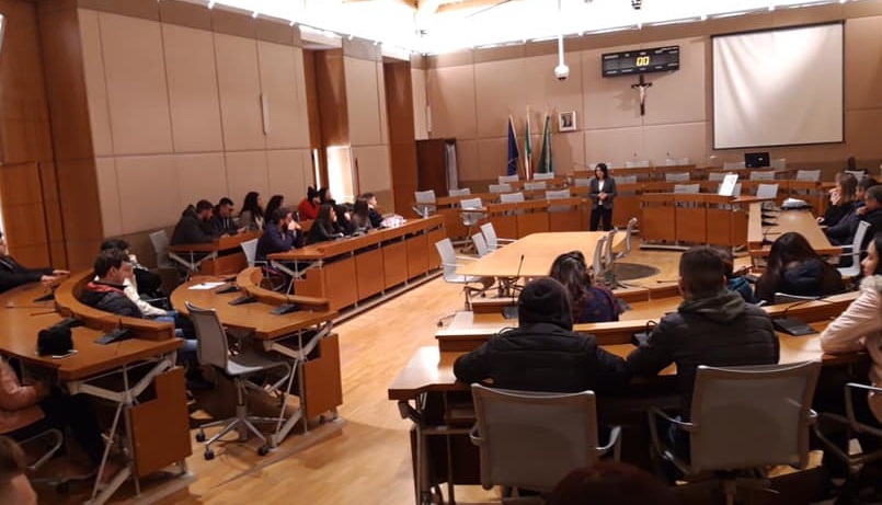 (foto: il presidente del Consiglio Comunale, M. Scala, con gli studenti dell’Insolera)