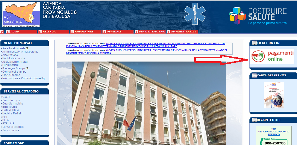 (foto: la home page del sito internet dell’Asp 8)