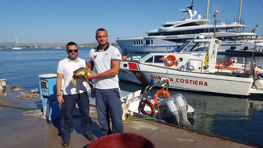 (foto: i militari della Guardia Costiera con la tartaruga “caretta caretta”)