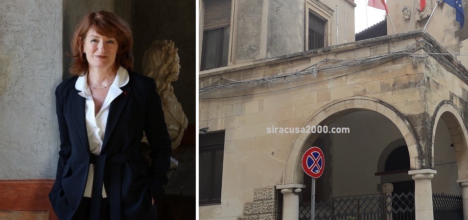 (foto: Palazzo Greco, sede della Fondazione Inda. A sinistra la regista M. Mayette-Holtz)