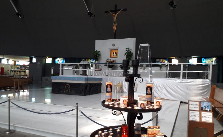 (foto: la pedana allestita sull’altare maggiore del Santuario)