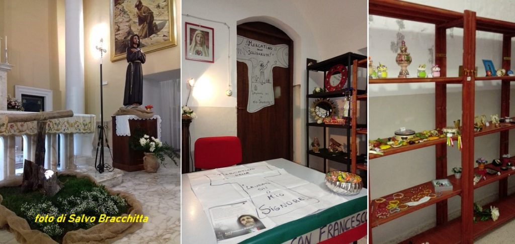 (foto: il simulacro di san Francesco e il “Mercatino della Solidarietà” – immagini gentilmente concesse da Salvo Bracchitta)