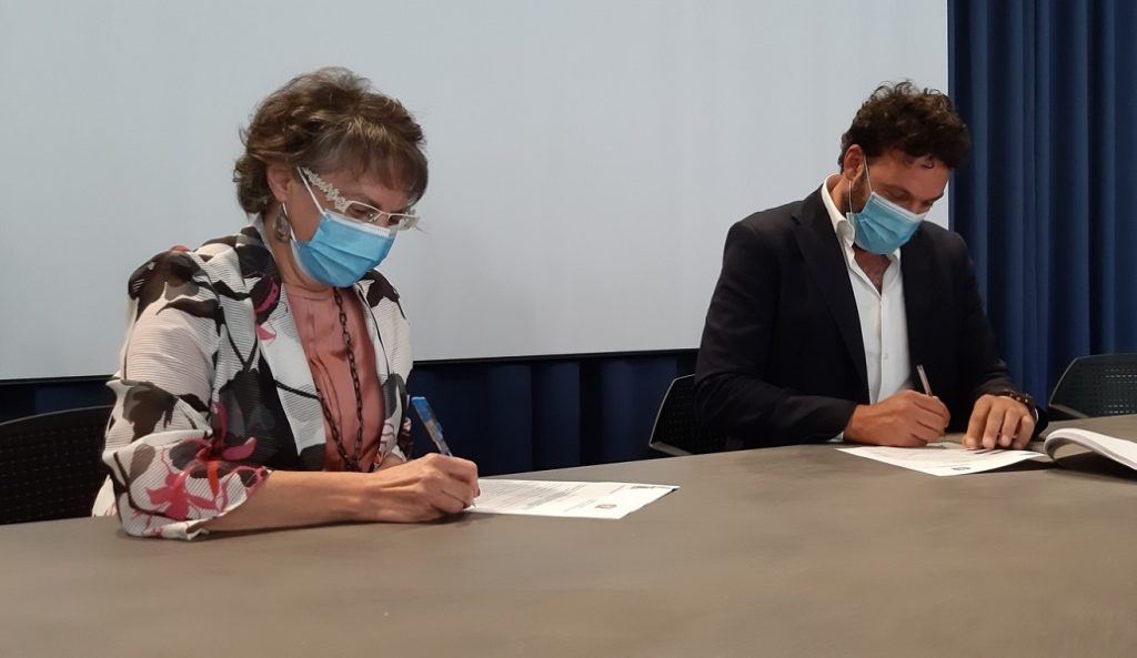 (foto: il prefetto Giusy Scaduto ed il sindaco Francesco Italia firmano la convenzione)