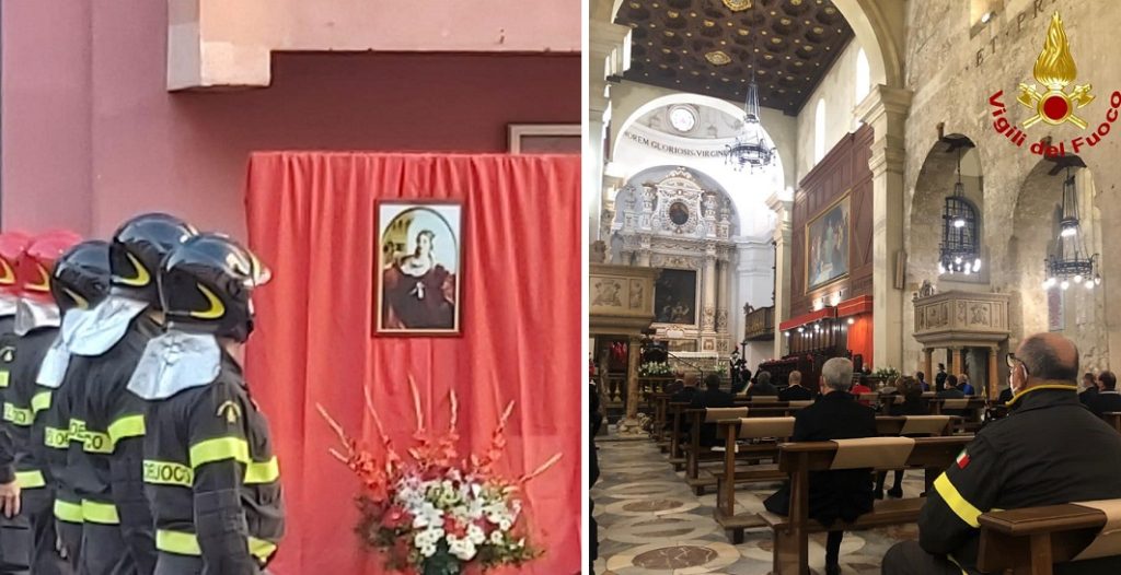 Una breve cerimonia in onore di Santa Barbara si è tenuta anche nel cortile della caserma di via Von Platen, dove il comandante Michele Burgio si è intrattenuto con il personale in servizio e con i Vigili del Fuoco in pensione, per condividere un momento di riflessione preghiera sul ruolo del Corpo al servizio della collettività e per ricordare tutti i colleghi che hanno perso la vita nell’espletamento del proprio servizio.