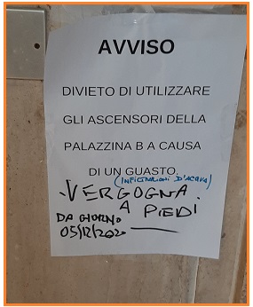 E che dire degli ascensori che sono fuori servizio dal 5 dicembre e che rendono proibitiva la visita agli estinti, a quanti hanno problemi di deambulazione?
