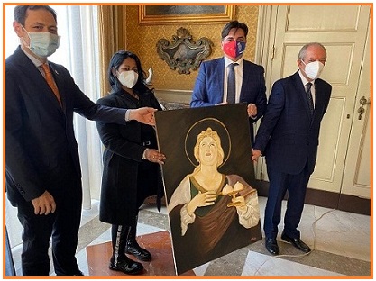 L’artista di origini indiane Bindù Anna Cavalieri ha donato alla città di Catania e alla Sicilia, alcuni dipinti che raffigurano Sant’Agata ed invocano la Sua intercessione per proteggere i fedeli e la città dalla pandemia.