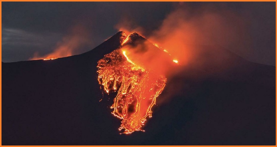 Due le colate che si dirigono verso la Valle del Bove, una delle quali ha raggiunto quota 1800 metri.