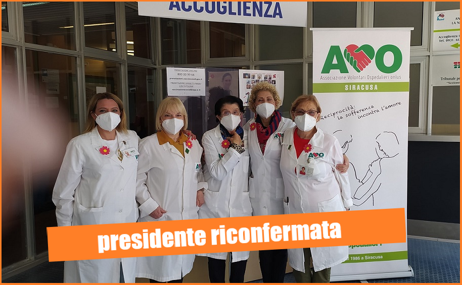 La siracusana Cetty Moscatt è stata riconfermata alla presidenza dell’AVO Sicilia – Associazione Volontari Ospedalieri. A Siracusa vanno anche la vicepresidenza, con Elettra D’Annibale, e la segreteria, con Silvia Gasbarro.