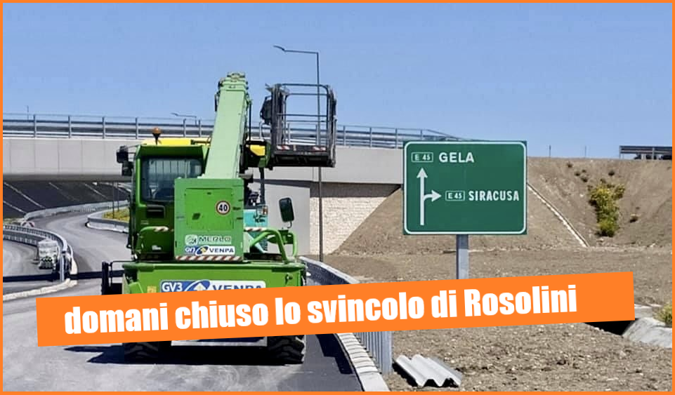 Dalle 9 alle 17 di domani, l’uscita di Rosolini dell’autostrada “Siracusa – Gela” sarà interdetta al transito per i veicoli provenienti da Siracusa, che saranno dirottati all’uscita obbligatoria di Noto.