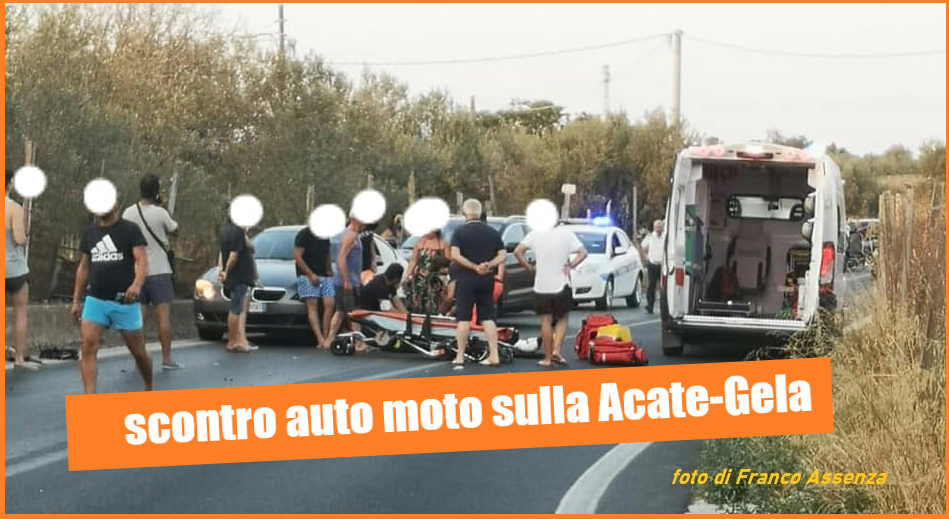 Un centauro è rimasto ferito, questo pomeriggio nello scontro della  moto su cui viaggiava, con un’auto, sulla Strada Provinciale “Acate-Gela”.