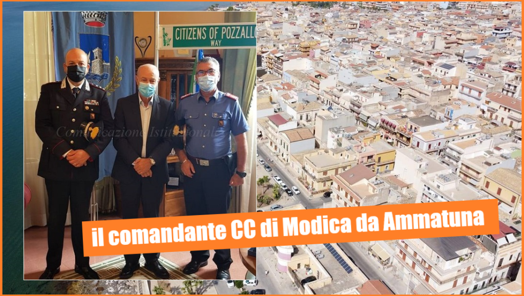 Il nuovo comandante della Compagnia Carabinieri di Modica, Capitano Francesco Zangla, è stato, oggi, in visita a Palazzo di Città “Giorgio La Pira”, accompagnato dal vice comandante della locale caserma di Pozzallo,  Maresciallo Roberto Piluccio.