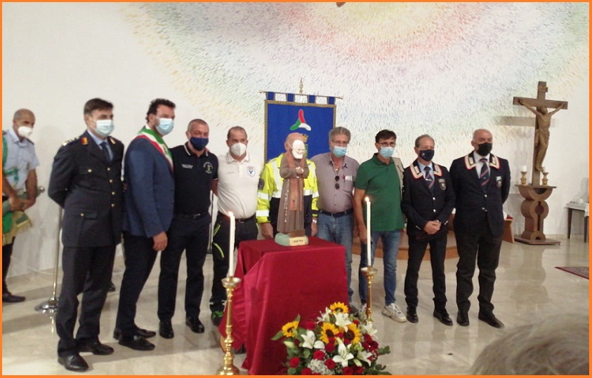 (foto: la statua di San Pio. Dietro tutte le autorità cittadine ed i volontari)