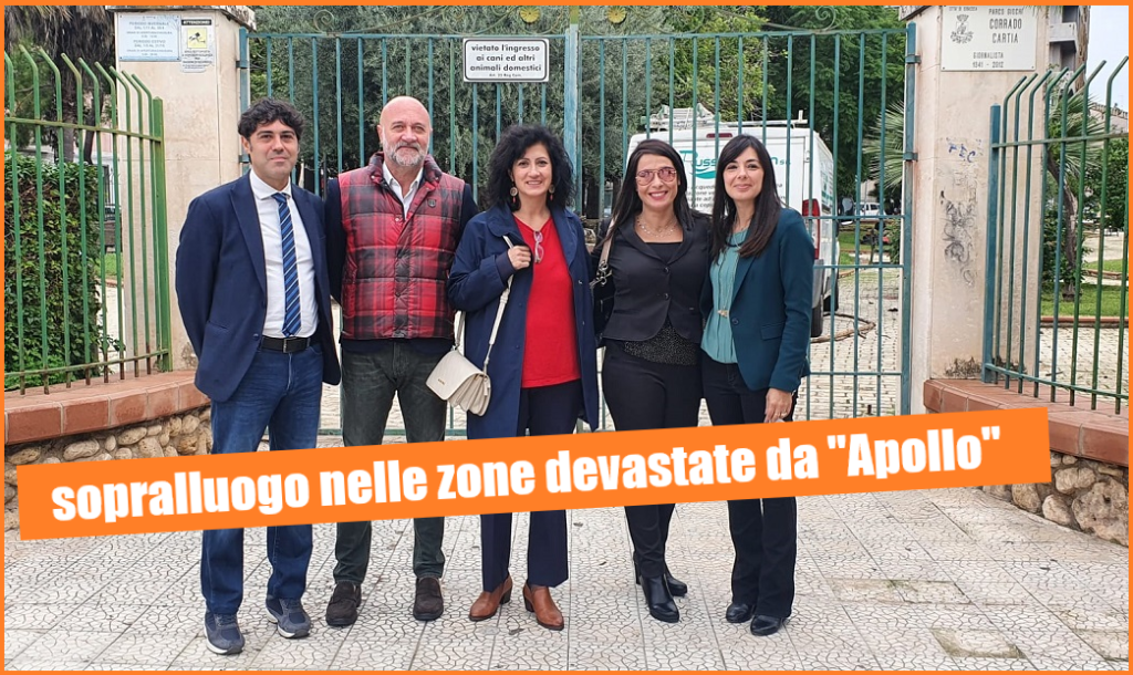 Portare all’attenzione del governo nazionale la devastazione che il passaggio del ciclone “Apollo” ha causato in provincia di Siracusa. Questa l’intenzione di Fratelli d’Italia, cha ha invitato la senatrice Tiziana Drago per un sopralluogo sul territorio, in modo da farle avere un quadro reale della situazione.