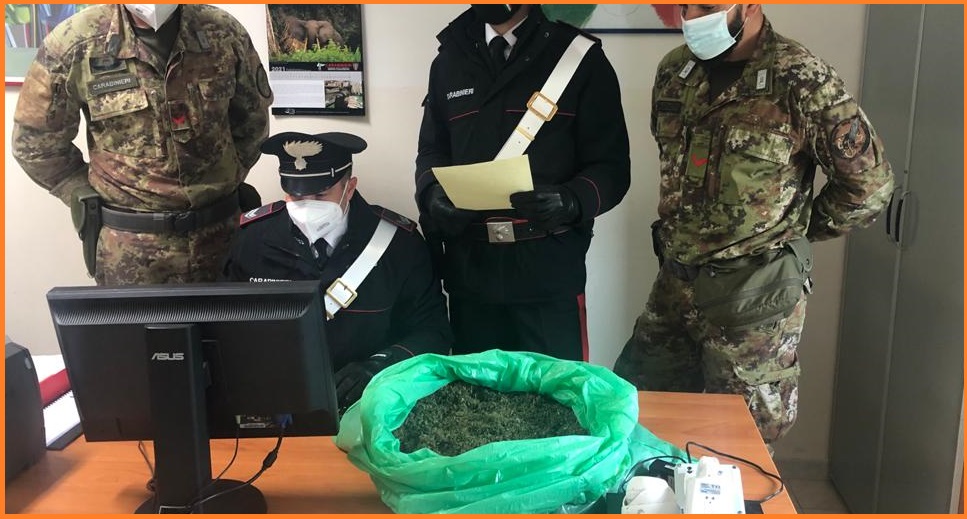 Durante la perquisizione, i militari hanno sequestrato circa mezzo chilo di marijuana, in parte già stata suddivisa in dosi, e vario materiale per la pesatura ed il confezionamento.