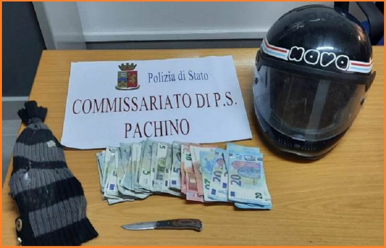 A guadagnare le manette è stato un 42enne tunisino irregolare che, coltello alla mano e volto travisato, ha fatto irruzione in un centro scommesse di via Costa, a Pachino, e si è fatto consegnare l’incasso, pari a 500 euro.