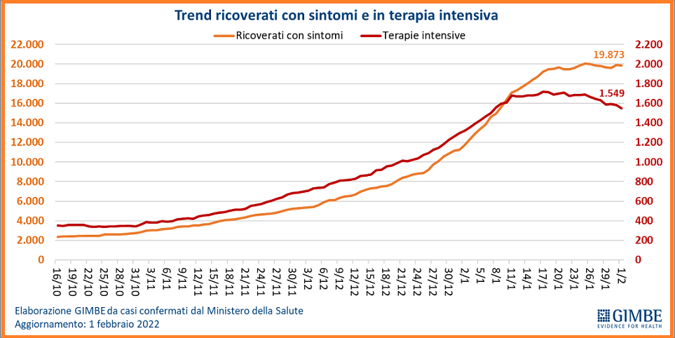_ “i nuovi casi settimanali registrano una netta flessione: circa 900 mila con una riduzione del 24,9% rispetto alla settimana precedente e una media mobile a 7 giorni che scende da 166.310 casi del 26 gennaio a 128.575 il 1 febbraio (-22,7%)”.