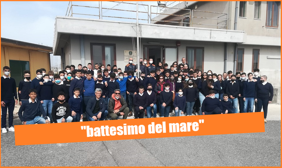 (foto: gli studenti con gli insegnanti ed il personale della Guardia Costiera)