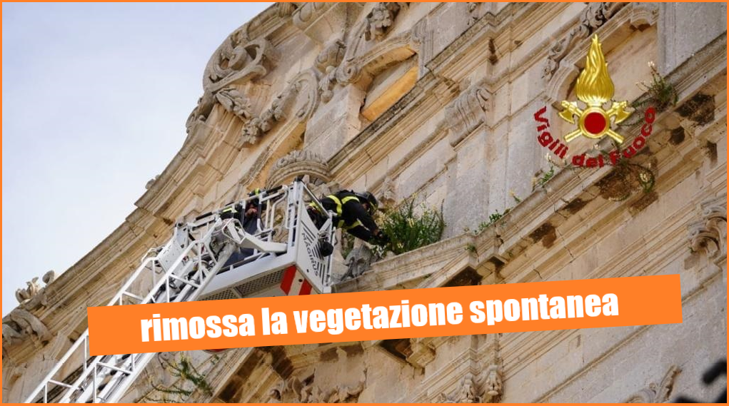 Su segnalazione della Curia Arcivescovile e con l’autorizzazione della Sovrintendenza ai Beni Culturali, il personale del Comando provinciale di via Von Platen, con l’utilizzo dell’autoscala, ha rimosso tutta la vegetazione sulla facciata della chiesa.