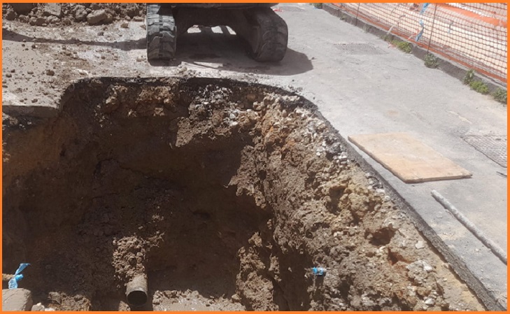(foto: i lavori di riparazione della tubazione in via Trapani – immagine di Siam SpA)