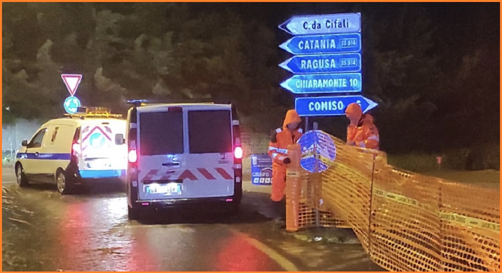Ha ceduto una parte dell’asfalto che conduce al ponticello di Punta Braccetto (e non il ponticello in sé) e la strada è presidiata per garantire la sicurezza degli automobilisti. Ad Ibla resta interdetto al transito veicolare e pedonale il tratto di via Avv. Ottaviano, compreso tra la Chiesa di Santa Maria dei Miracoli e via Porta Walter, dove si sta verificando la stabilità del costone a monte.