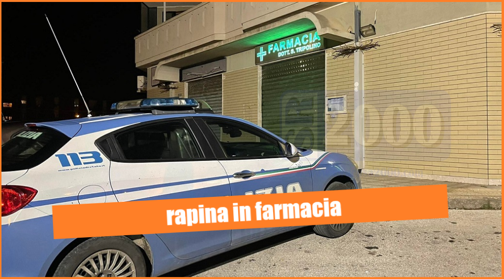 Sarebbe di soli 20 euro il bottino di una rapina messa a segno da un rapinatore solitario ai danni della farmacia Tripolino di viale Algeri.
