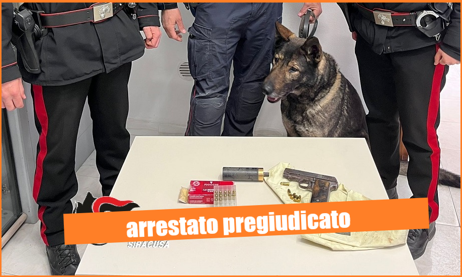 Il fiuto dei cani del Nucleo Carabinieri Cinofili di Nicolosi ha smascherato un pregiudicato che teneva nascosta sotto al cuscino una piccola pistola browning modello colt con matricola abrasa con caricatore inserito e colpo in canna pronta all’uso.