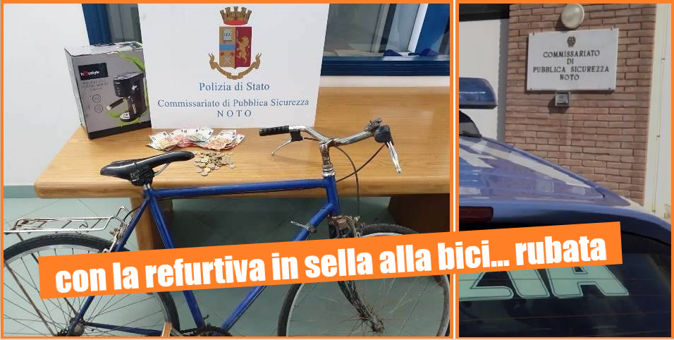 Era riuscito a rubare una macchinetta del caffè in un supermercato di Noto e stava per farla franca, quando è stato individuato dai poliziotti mentre saltava in sella ad una bici per darsi alla fuga.