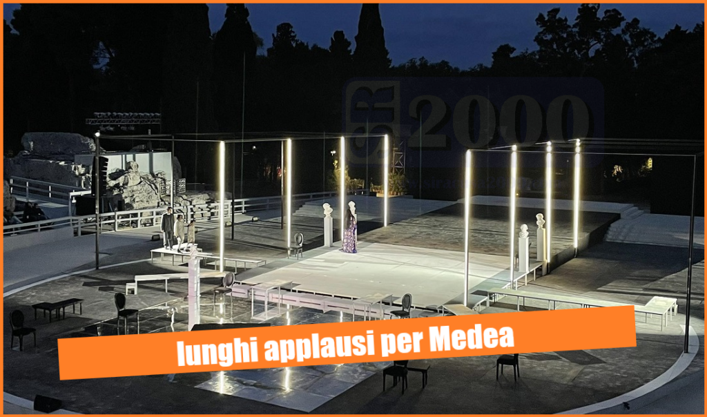 Tutto esaurito anche per la prima di Medea, ieri sera, al Teatro greco di Siracusa, con oltre 4500 spettatori che hanno assistito e salutato con un lunghi applausi, lo spettacolo che vede Laura Marinoni nel ruolo di protagonista.