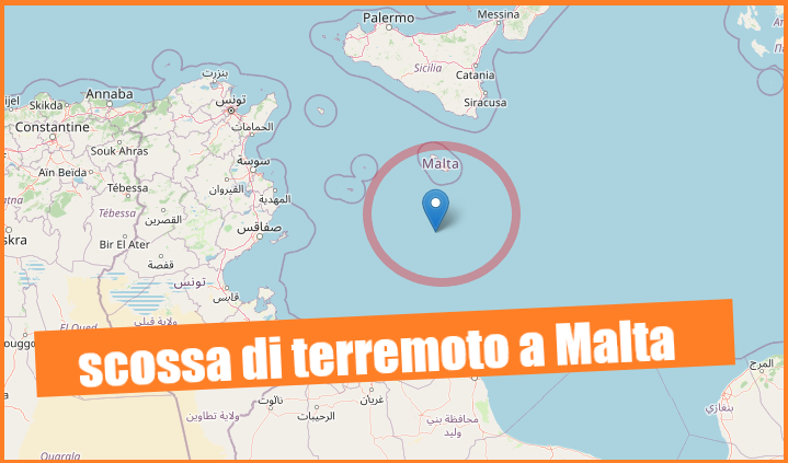 Una scossa di terremoto di media intensità è stata registrata sette minuti prima delle 3 della scorsa notte, nel Canale di Sicilia, a sud dell’isola di Malta.