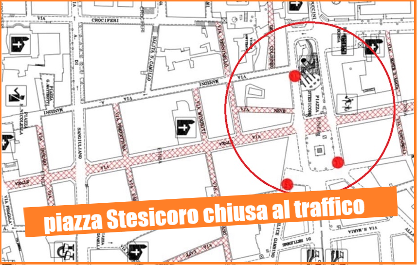 Scatterà alle ore 17 di oggi la chiusura al traffico veicolare di piazza Stesicoro, voluta dal sindaco Enrico Trantino, allo scopo di decongestionare il traffico ed agevolare le vie del commercio della zona.