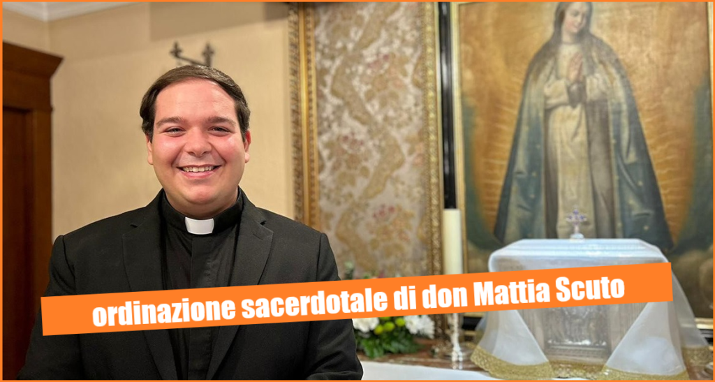 L’ordinazione sacerdotale di don Mattia Scuto, per l’imposizione delle mani e la preghiera di ordinazione del vescovo, mons. Antonino Raspanti, è prevista per le ore 18 di martedì 2 gennaio 2024, nella Basilica Cattedrale di Acireale.