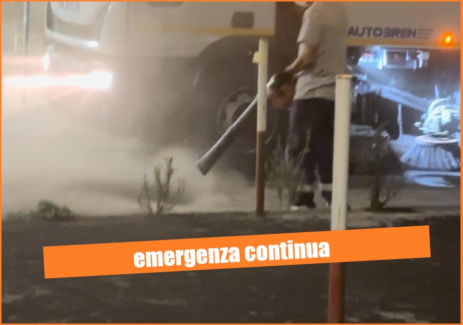 Proseguono anche le attività del piano straordinario di pulizia della cenere vulcanica nei tre lotti cittadini. Sono già 1500 le tonnellate di cenere rimossa dalle strade, più di un terzo di quella stimata.