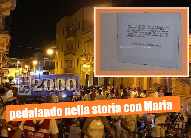 Anche quest’anno, tra gli eventi collaterali organizzati in occasione delle celebrazioni per il 71.mo anniversario della Lacrimazione, non poteva mancare “Pedalando nella Storia con Maria”. L’appuntamento è per martedì 27 agosto. Il raduno dei partecipanti, come al solito, sarà davanti al sagrato della Basilica, alle ore 19.45. Circa sei chilometri in bici da percorrere, nei luoghi della Madonna delle Lacrime.