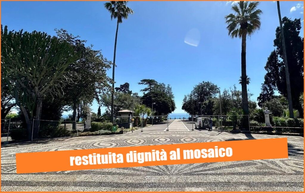 Si sono conclusi, a Villa Belvedere, i lavori di riparazione delle parti danneggiate dello storico mosaico in ciottoli.