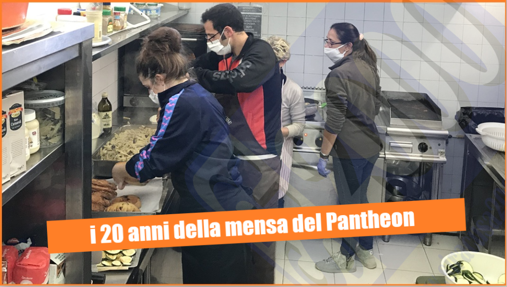 La mensa del Pantheon assiste in maniera continuativa oltre 200 persone e distribuisce una media di 50 pasti al giorno.