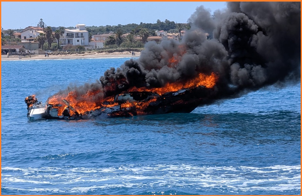 Una imbarcazione da diporto di circa 7 metri, è andata in fiamme, poco dopo le 12.30, a Marzamemi, ad un centinaio di metri dalla costa. Le due persone a bordo, marito e moglie, si sono lanciate in mare e sono state tratte in salvo da un bagnino che, avendo visto la scena da un lido, ha preso il pattino e si è subito precipitato in loro soccorso.